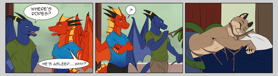 Fyr keeps showing me all of these cat memes and laughing at how funny it would be to do it to me. I'm obviously less than amused the idea but her and Kao like to wait until I'm sleeping to pull their planks. This after they saw someone on youtube propping up a sleeping can't limbs with sticks.