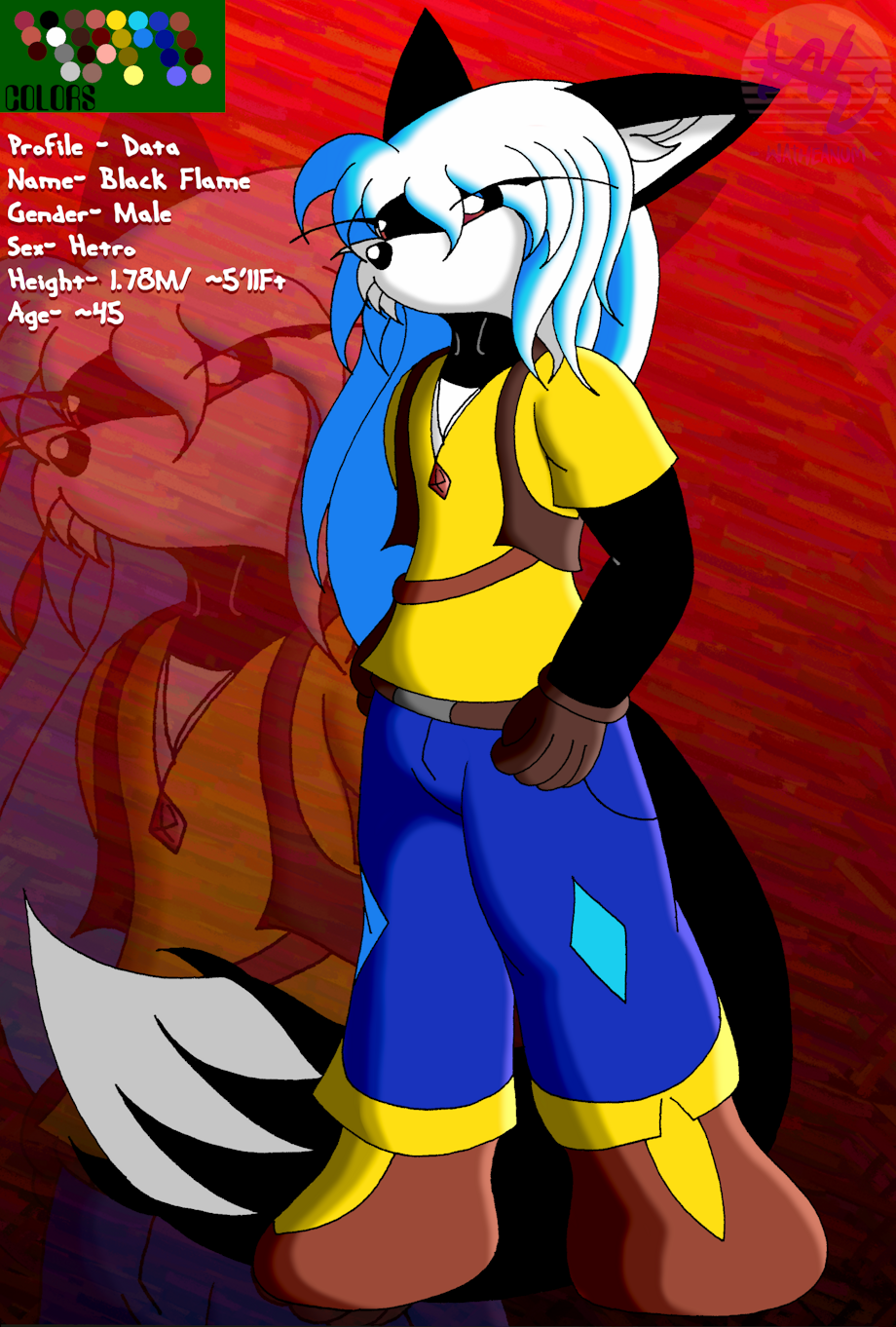- Character Main Data Art Universe - Anum Chaos Name - Black FULL Name - Black Flame Gender - Male Sex - Hetro Height - 1.78m /~5´11ft Age - ~45 Humanyears Race/Class - Fox,"Dark tribunal" clan, Anum IF there would be a theme song - https://www.youtube.com/watch?v=F1G01KAcC38