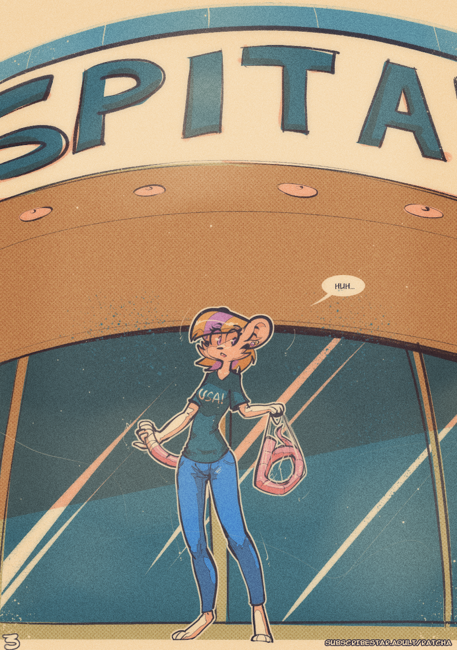 Oh no! I was really hoping the previous page was a fake-out to make us think the doc chopped her tail off. I had noticed her tail in the previous chapter on that one page, but somehow in my mind it just looked like it was disappearing into the darkness under the bed.