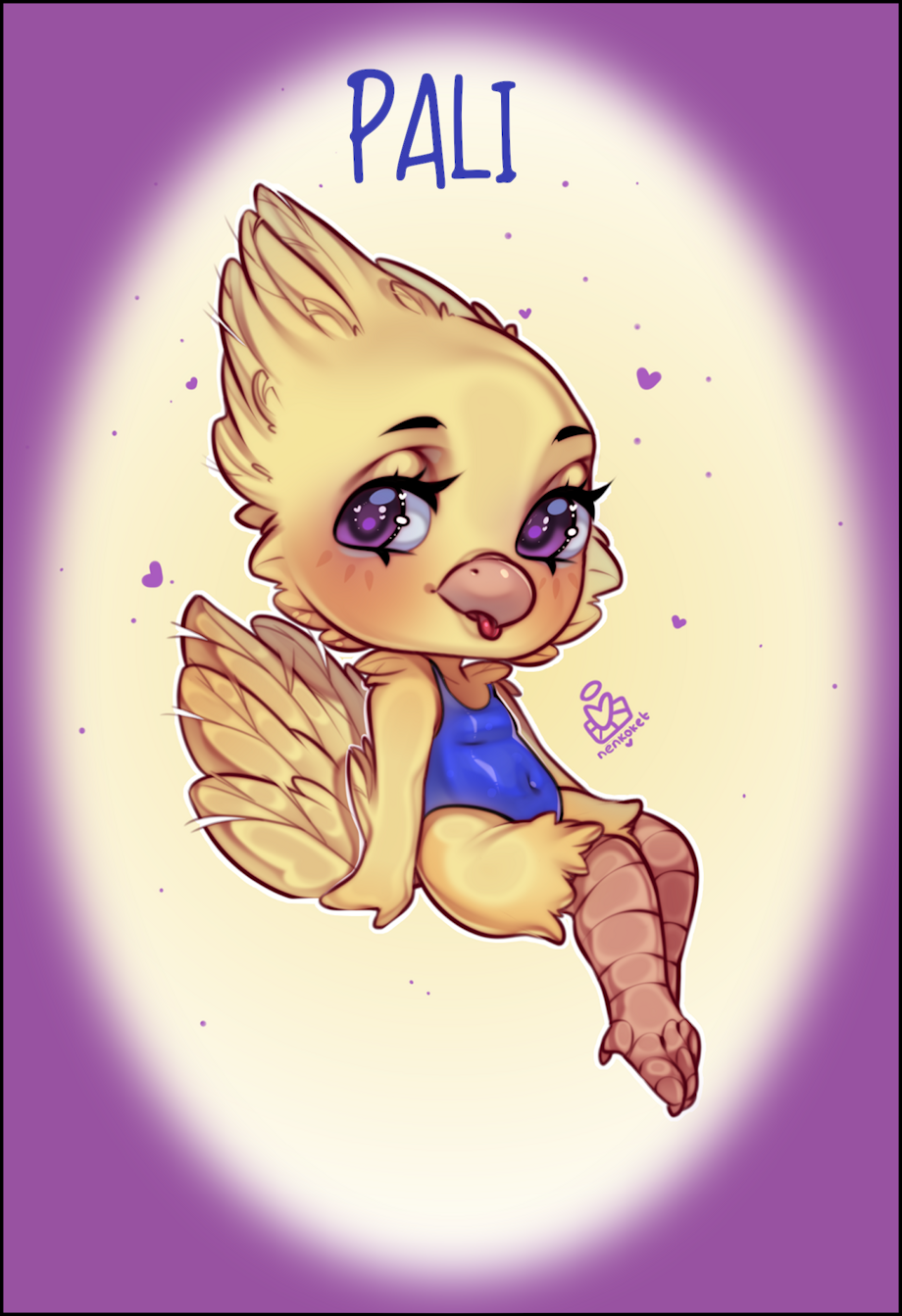 A chibi birb named Pali in her favorite swimsuit <3