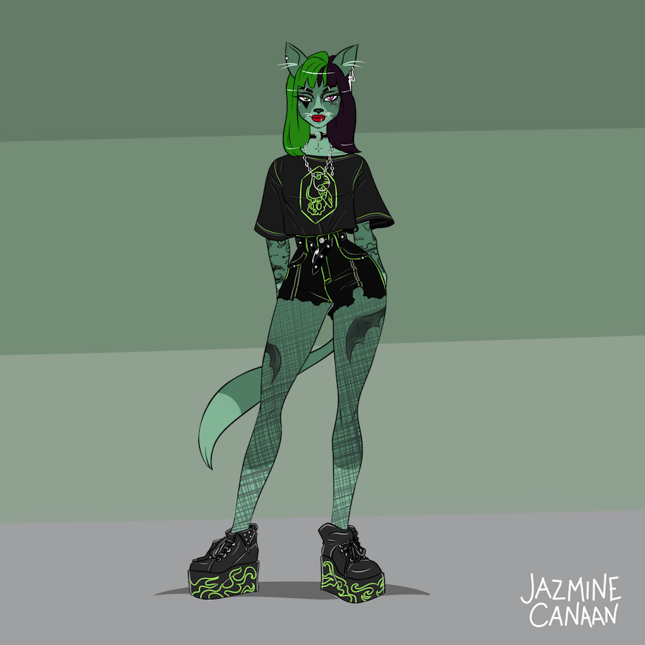 Another OC, this is Catrielle. She's a gothic housecat totally random, she's a bit of a pathological liar bc she doesn't like people knowing what she does or what she's up to