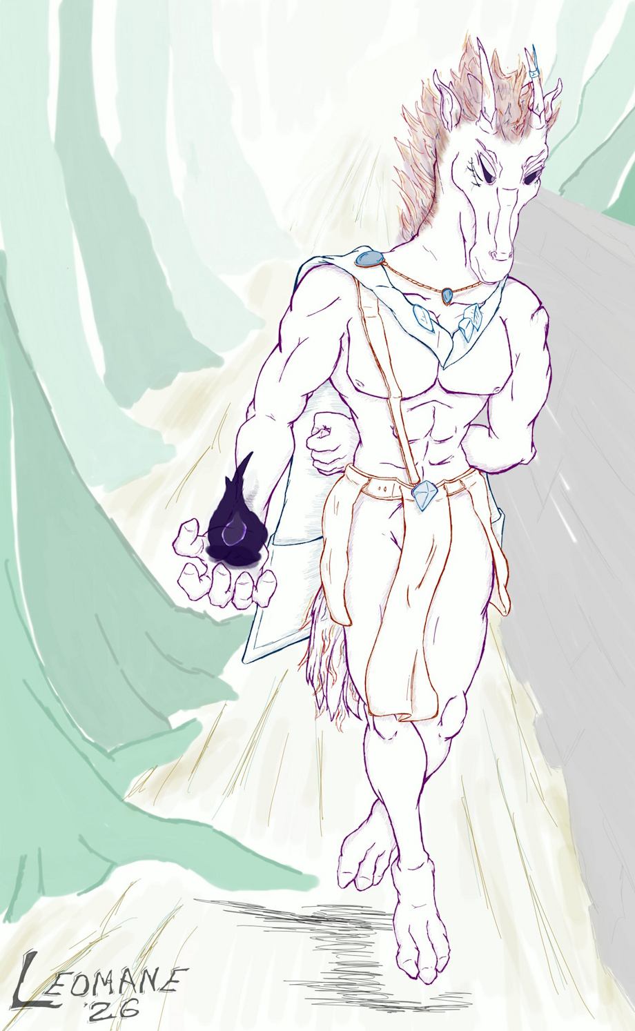 With year of the horse upon us and me always looking at some older characters that need spotlighting or updating, it was perfect timing for the shaded wizard Ghran Nightmare to make a comeback and show off his “villainous” magics, as who doesn't like encountering a hovering buff a war-wizard covertly looking for components and artifacts in the depths of a guarded forest. Plus I totally wanted to try some more villainy, hovering lineless background and perspective stuff while giving a glow up to an old OC!