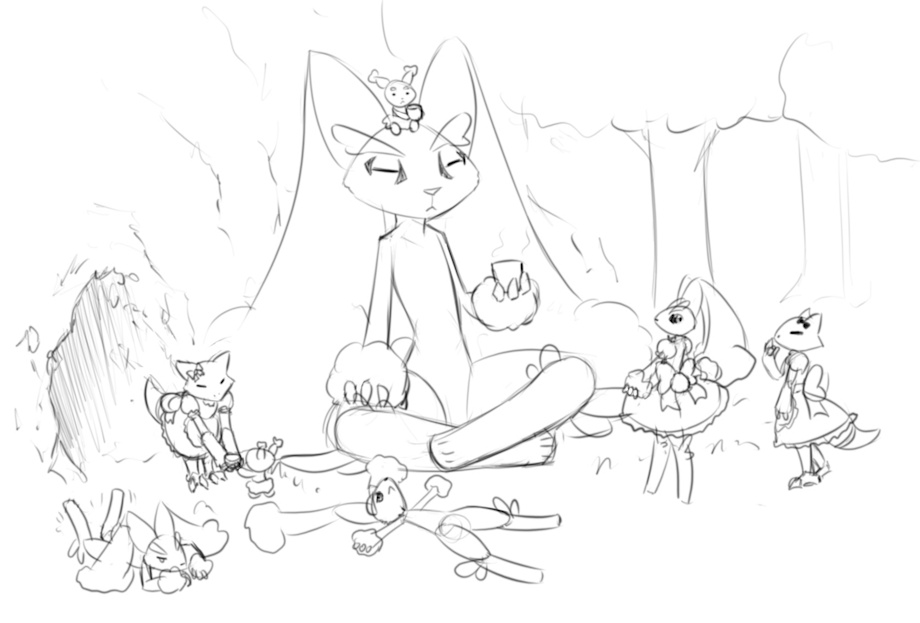 I like the variety of situations here, from the Abra maids making sure the little Bunearies are taken care of to one of the Lopuns trying on the maid outfit herself. She looks great in it!