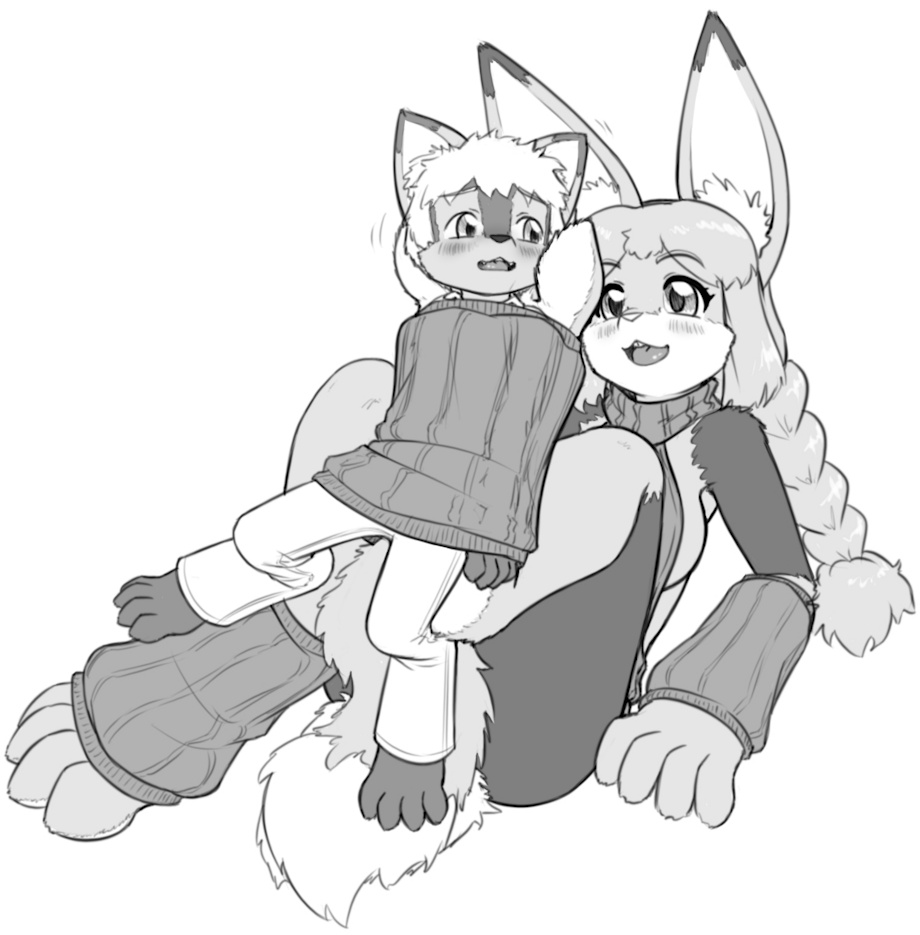 Silly idea and inspiration here. I think Lionel is more being warmed by Chrome's legs than she is by the legwarmers themselves, so... still leg-warming, technically. Adorable memesweater on Chrome also! Nice and cozy!