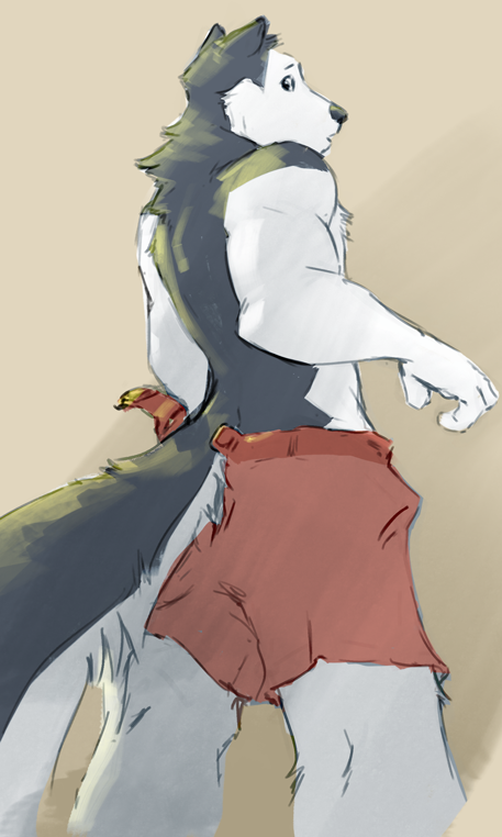 Oh dear! Max's tail has proven too fluffy for his swim trunks to contain! I guess he'll just have to swim naked!