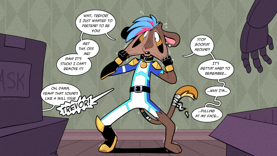 ! Look, he's got armor he takes off all the time. Surely he can remove a mask? I mean, soon it won't be a mask anymore, so...