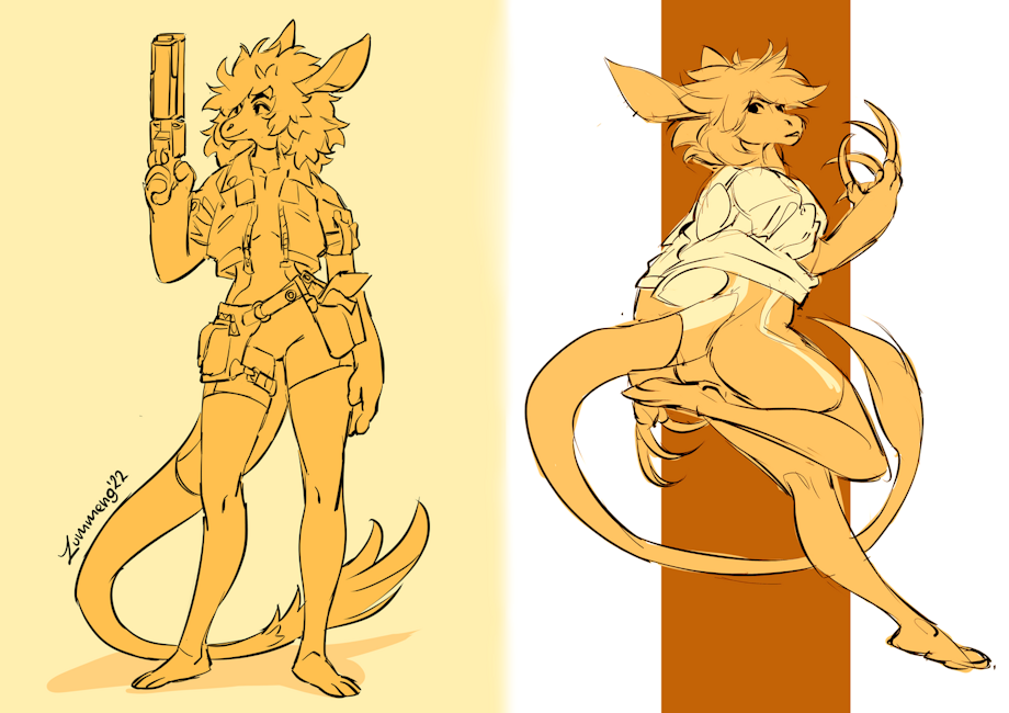 So this will be a pretty weird introduction, but here it comes :D So she's Ana, the main character in one of our comics, which is still a very long way from being started. Her claws are razor sharp, and her fingers are trigger happy, but those are quite useful characteristics when you have to blast your way through the endless space and countless enemies :D