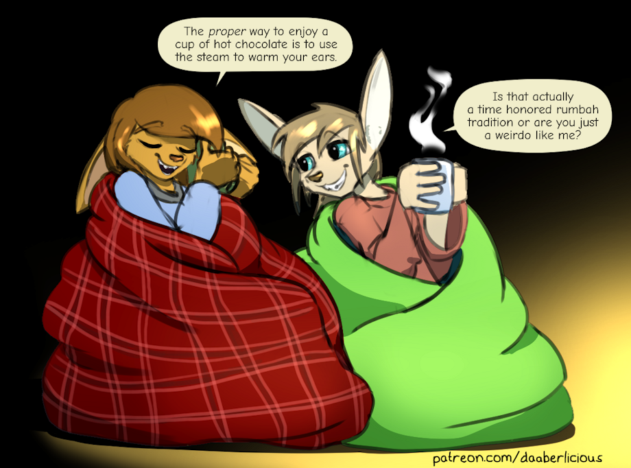 Butter and Leo gettin' cozy with hot chocolate, Suggested by Floofy!