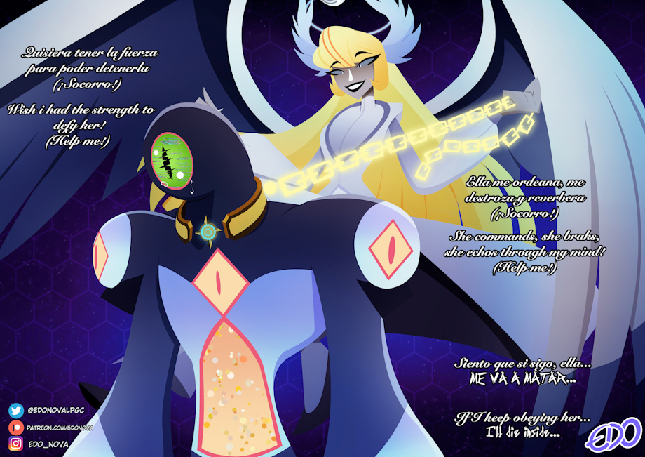 He pensando en hacer algunos artes de momentos de canciones de mi fancomic, pero en vista de que esta no supe como añadirla, la he ido colocando en las descripciones de las páginas que he ido publicando, tanto en inglés como en español.