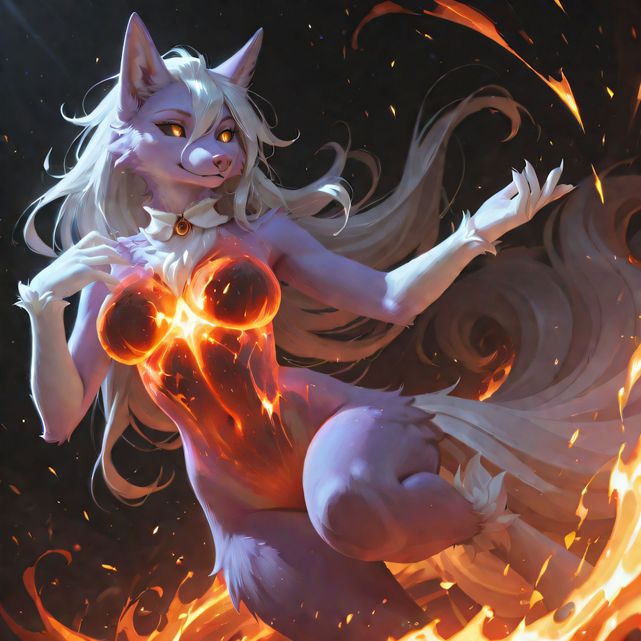 HYPERREALISM, masterpiece, high quality, detailed fur, high detail, 32k_uhd, fine details, intricate details, highest quality, perfect anatomy, perfect face, detailed face, detailed eyes, perfect eyes, very aesthetic, concept art, masterpiece, best quality, amazing quality, ultra-HD, high resolution, ultra-detailed, absurdres, highly detailed, detailed eyes, source_furry, no lineart <lora:(1) FenrisXL Lighting:1> <lora:(1) Mjölnir (SDXL Lighting):1> <lora:photorealistic anthro 2:1> furry (smiling, burning body, solo, closeup, looking into the horizon, reaching to the sun:1.4) <4z4134> (female:skinny:anthro:ninetales:1.4), (countershading, purple fur, chest tuft, large breasts:1.3), (long hair, hair between eyes, silver hair:1.3), (white collar:1.2), (brown eyes, black pupils, black sclera:1.4), (wrist tuft, ankle tuft:1.4), (digitigrade:1.2), (pink nose1.2), (white hands, white forearms, white elbows:1.4) (white tipped tail:1.5) Negative prompt: bloodshot eyes, arms behind back, hands behind back, blurry, blurry background, bad anatomy, bad hands, three hands, three legs, bad arms, missing legs, missing arms, poorly drawn face, bad face, fused face, cloned face, worst face, three crus, extra crus, fused crus, worst feet, three feet, fused feet, fused thigh, three thigh, fused thigh, extra thigh, worst thigh, missing fingers, extra fingers, ugly fingers, long fingers, horn, realistic photo, extra eyes, huge eyes, 2girl, amputation, disconnected limbs, worst quality, normal quality, low quality, low res, blurry, text, watermark, logo, banner, extra digits, cropped, jpeg artifacts, signature, username, error, sketch ,duplicate, ugly, monochrome, horror, geometry, mutation, disgusting, jpeg artifacts, , NEGATIVE_HANDS ac_neg2 p0rnXL-neg DeepNegative_xl_v1 BeyondV3-neg Steps: 30, Sampler: DDIM, Schedule type: SGM Uniform, CFG scale: 3, Seed: 2231277168, Size: 512x512, Model hash: 1a859ef789, Model: NOVAYiffymix_v62, Denoising strength: 0.25, ADetailer model 2nd: face_yolov8s.pt, ADetailer confidence 2nd: 0.3, ADetailer dilate erode 2nd: 4, ADetailer mask blur 2nd: 4, ADetailer denoising strength 2nd: 0.4, ADetailer inpaint only masked 2nd: True, ADetailer inpaint padding 2nd: 32, ADetailer version: 25.3.0, Hires upscale: 1.5, Hires steps: 20, Hires upscaler: 4xUltrasharp_4xUltrasharpV10.pth, Lora hashes: "(1) FenrisXL Lighting: c49df8024095, (1) Mjölnir (SDXL Lighting): 368d428918ac, photorealistic anthro 2: bed53d4c8b68", TI: "NEGATIVE_HANDS, ac_neg2, p0rnXL-neg, DeepNegative_xl_v1, NEGATIVE_HANDS, ac_neg2, p0rnXL-neg, DeepNegative_xl_v1", Version: f2.0.1v1.10.1-previous-224-g90019688 |
