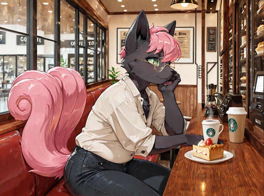 Simply Put Sometimes you Enjoy a pleasant cup of coffee, and sometimes, you enjoy a treat. Sometimes that involves the surprisingly dry cake at the coffee shop. A simple fox with simple pleasures