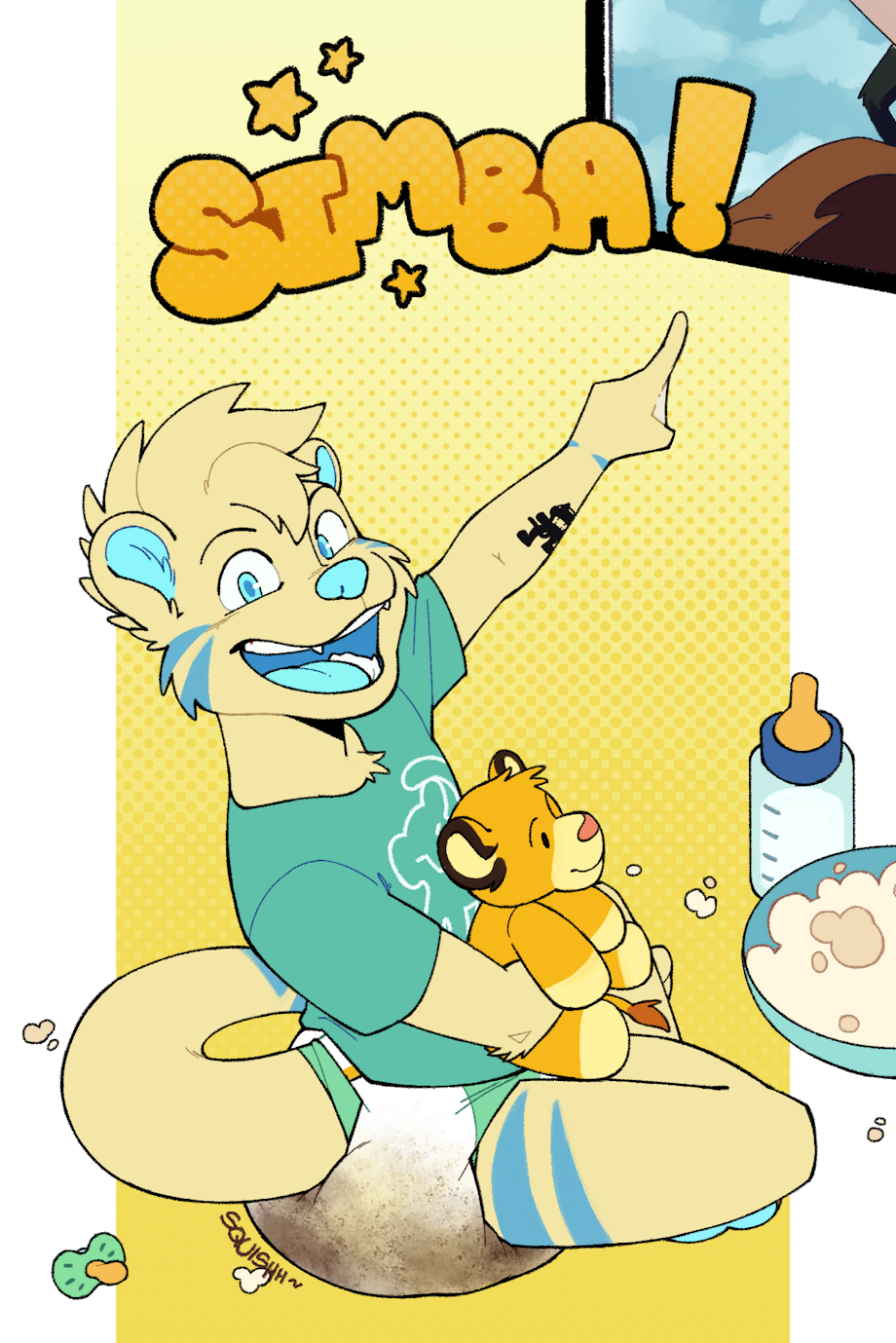 He'd love that, having another friend nearby with a full stinky diapey like him, especially another otter, would cause him to be an excited squirmy giggly boyo (very often accompanied by some pamp squeezes and pats <3 )