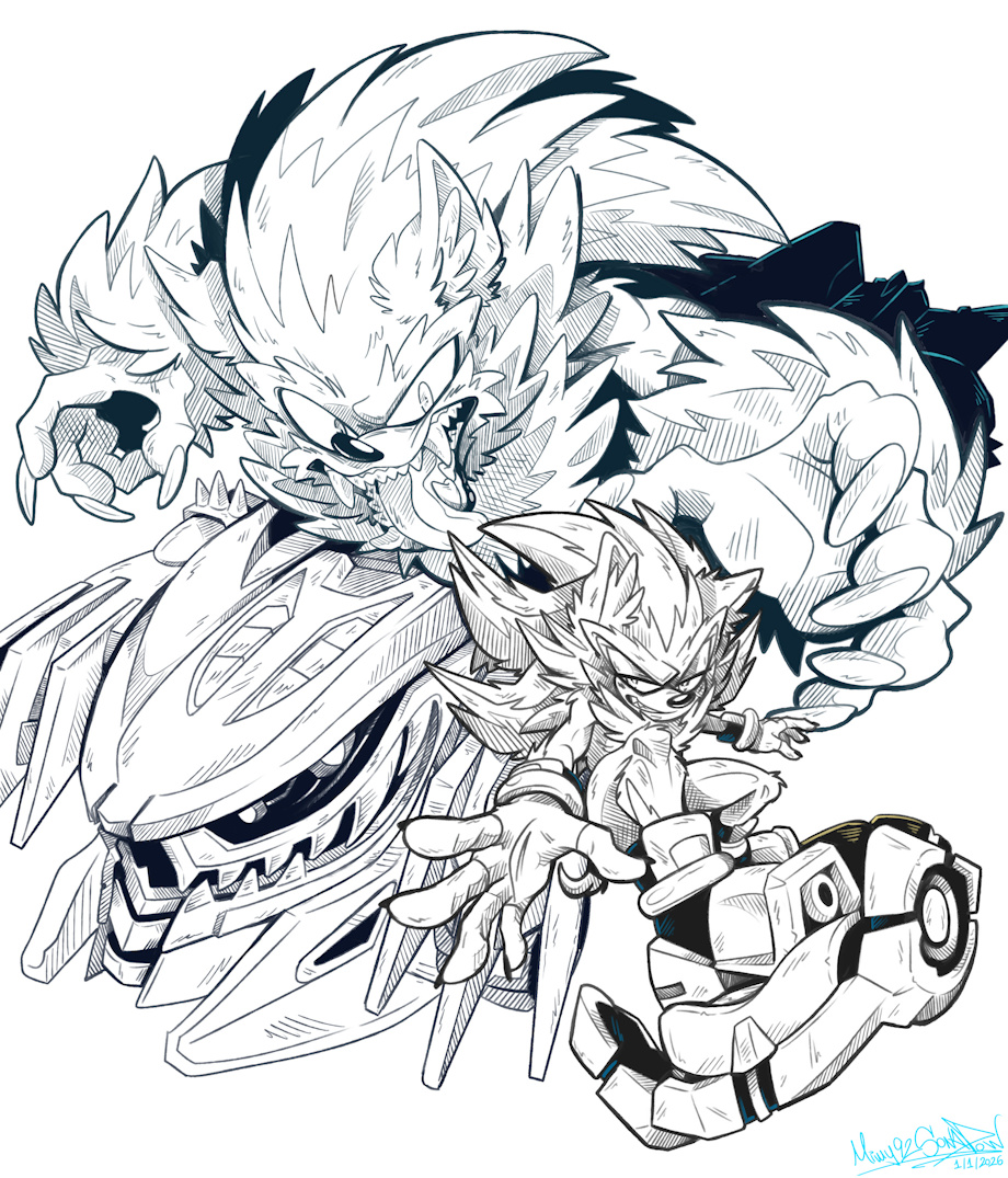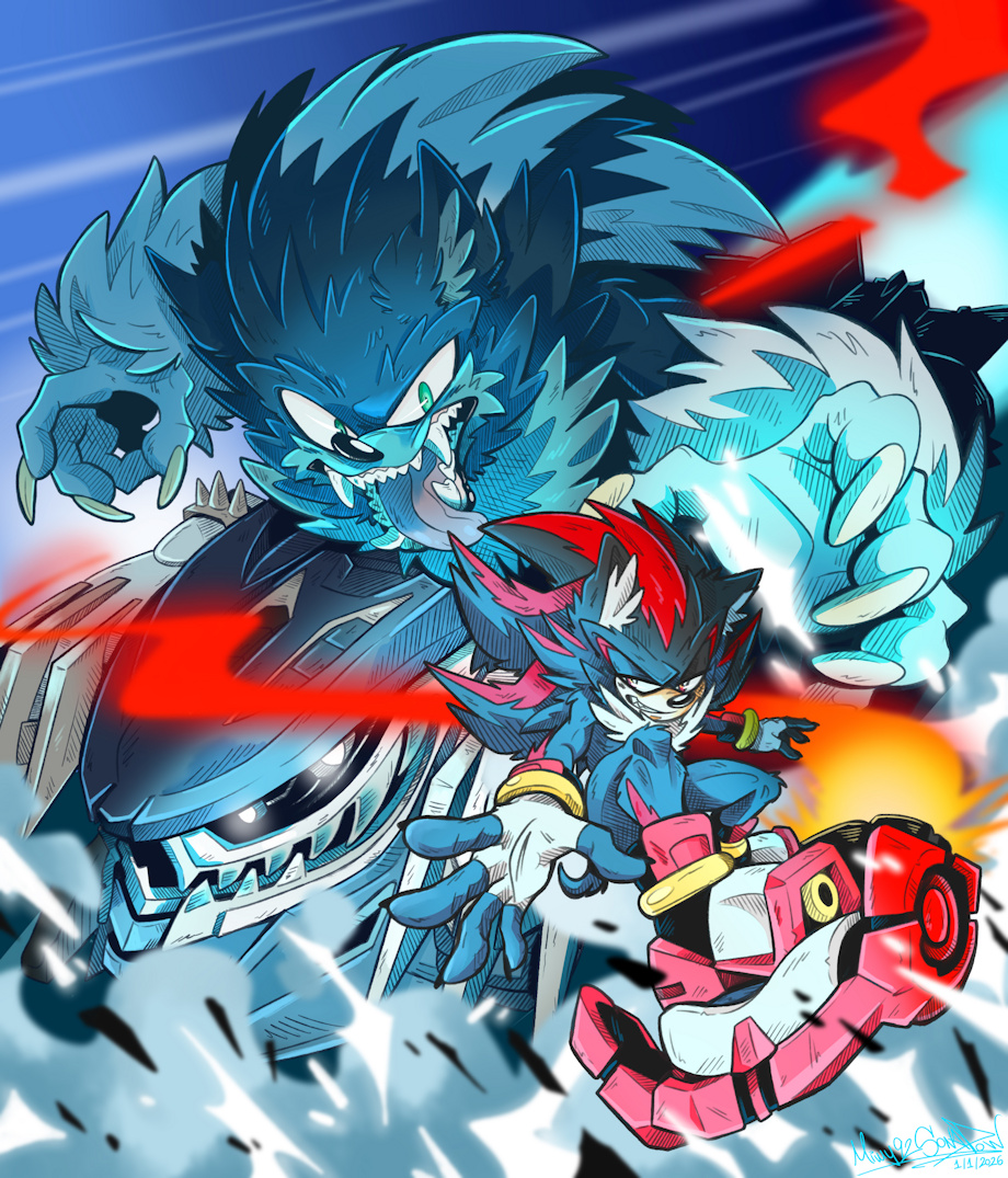 Haha, I've been working on this drawing since the end of October, and finally, as a "New Year's gift," I've decided to finish it, and I'm really happy about it. I think I abandoned it because I wasn't convinced about Sonic Werehog's face, and I didn't know how to finish the image, like everything related to effects and the background. Well, a couple of days ago I picked it up again. I was inspired by the amazing Sonic Crossworlds promo video (https://www.youtube.com/watch?v=5ocBa8jTXUA ), and it helped me a lot with the effects (thanks, Photoshop, for the Gaussian blur, haha!). So, I'm happy to start 2026 with more art by and for myself, and I'm so happy to share it with all of you ^^
