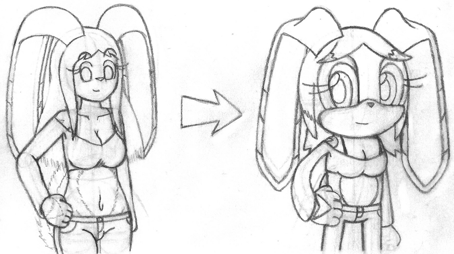 I spotted a different outfit that works better for Sugar, and had a better attempt at a Mobian design on top of that. Honestly, I wish I had dreamed this up back when I was first starting to differentiate Sugar from Cream.