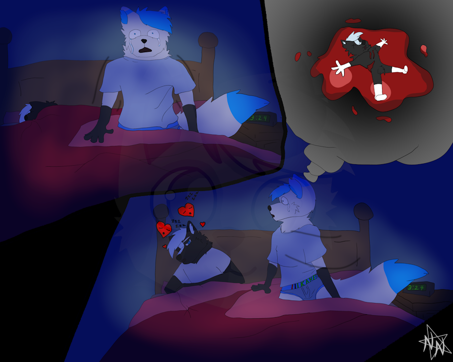 Here's a sketch that makes all of this super real. Nightmare is messing with both of our main foxes now, even though Nova is more indirect. Animation and full art piece coming later. 😞😥