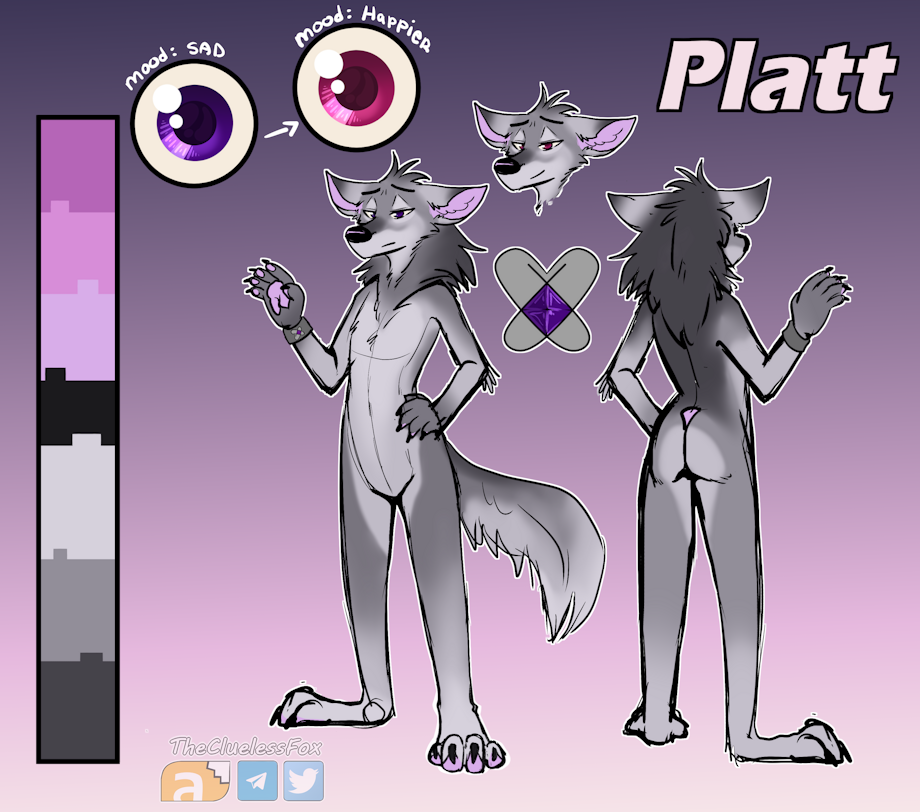 The Purple Soul is officially here. Named after the river of which I grew up next to, they both stand to symbolize the desolation and isolation that was forced upon us. As the Purple Soul, he stands adjacent to the Blue Soul, for he is just as, if not even lonelier than that of the Blue Soul. A lone wolf against his will... not that he has much of a will left. He stands adjacent to the Red Soul due to just how close in reality the Red Soul is to losing everything. Infrared and ultraviolet may be opposites on the light spectrum... but that stands to contrast the Red and Purple Souls demeanors... But on the color wheel... At a point, there will be no more distinction The Purple Soul also stands opposite to the Yellow Soul, for the Yellow Soul is successful in all his endeavors, sexual and otherwise, while the Purple Soul will teach you what it really means to live by Murphy's Law every day that he shall live Darkness is that of no will to live or die. It is default in the world. Therein the Purple Soul's mind is easily malleable. For better or worse. He cannot hide how he feels. Is he to be depressed 24/7? Perhaps not. Even the eternal night can show him the stars. You will see in his eyes when his mood may shift. But he knows deep down that such respite is only a temporary bandage for the deep abyssal wounds inflicted upon him long ago... Art is brought to you by thecluelessfox