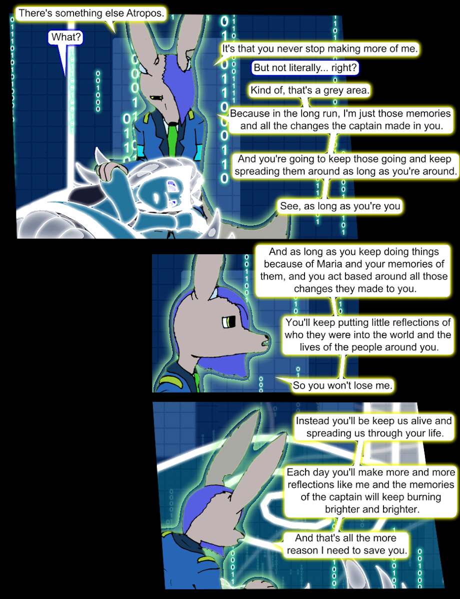 That is a pretty big difference but also those two concepts (721 not being real and the memories that make her up not being something she will lose) aren't wholly unrelated.