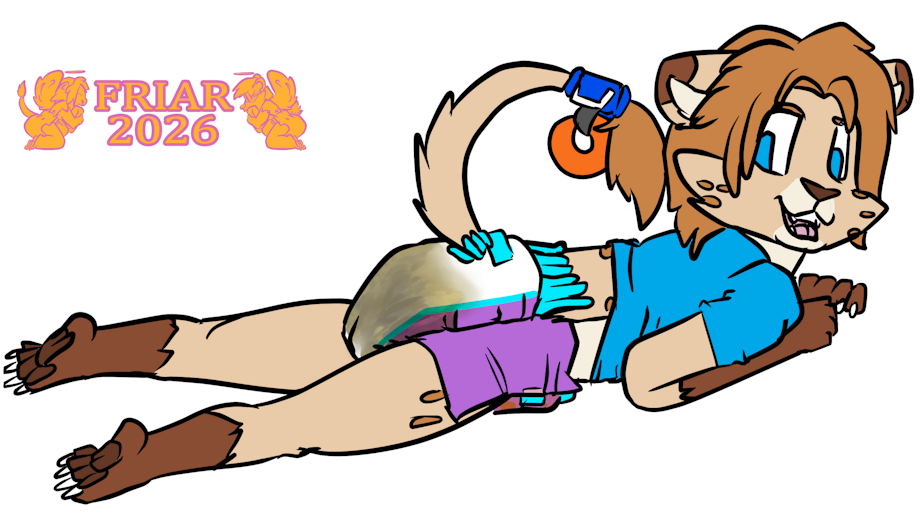 Illustration of Toffee the wet and messy diapered lion filling his diaper on the changing table. Daddy Tylahn holds a Super Pixel Pals diaper in the foreground. "Gamer pants? Just for me?" "Soon to be yuckypants!"