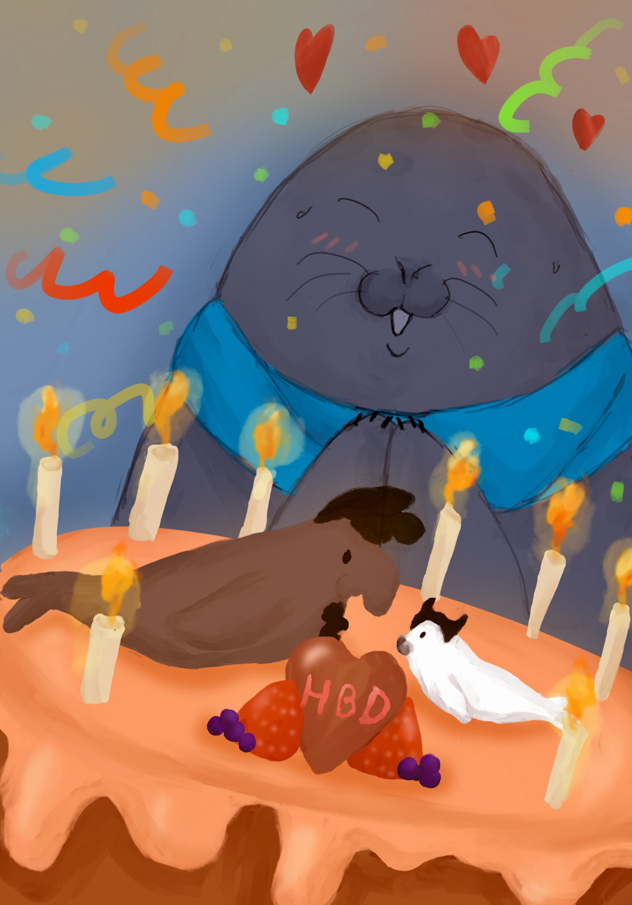 Drew my “sealsona” and a cake with my seals AU blorbos huhu ! ππ¦π