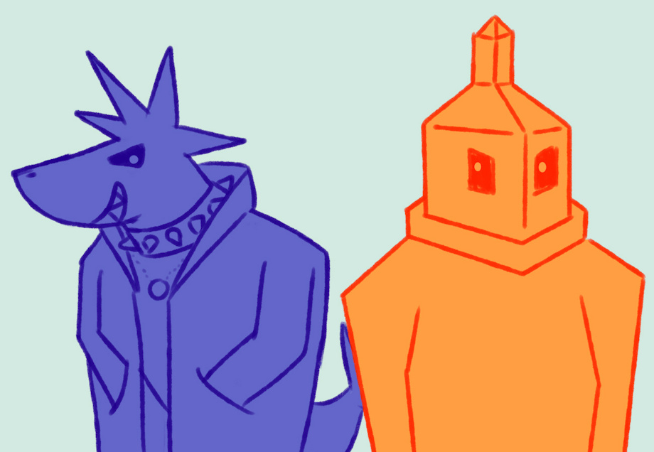 Shark dude. A bit punk/emo looking. Hunched over. Hands in pockets. Can fill rooms with water. Purplish/Blueish in color.