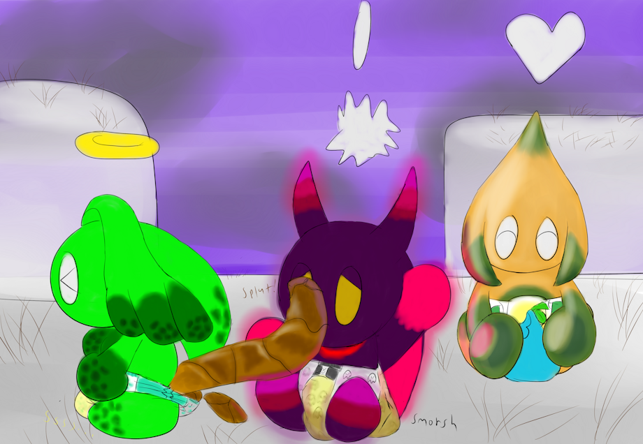 That's what the dark chao gets for trying to pull down the hero's diaper while it's in the middle of going! Neutral's just vibing.