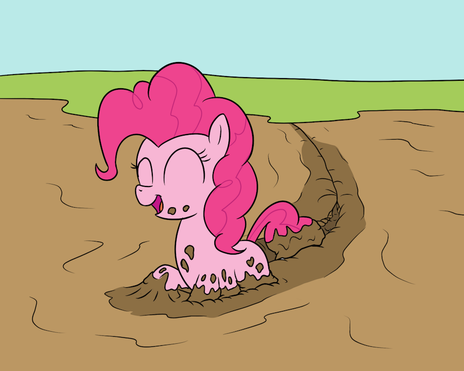 Pinkie is very happy mood today and she wants to play in a huge big mud pit.