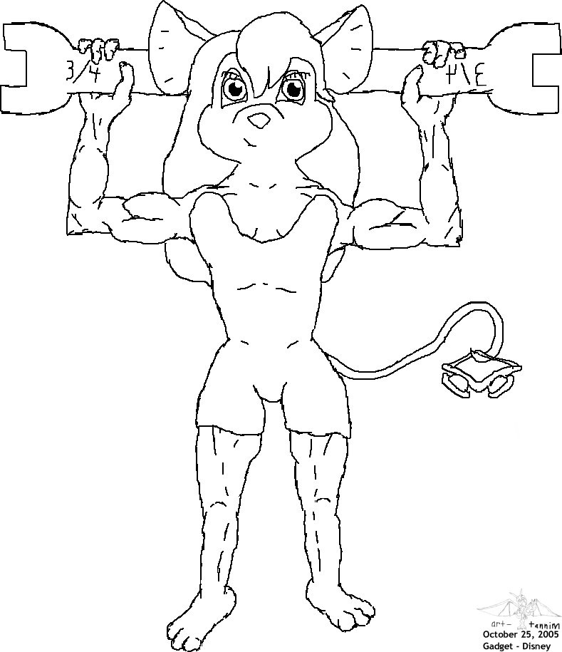Gadget standing there with a big wrench showing off how buff she is after using it and similar equipment all her life. This and Buff Gadget were basically Muscle practice in Paintchat.