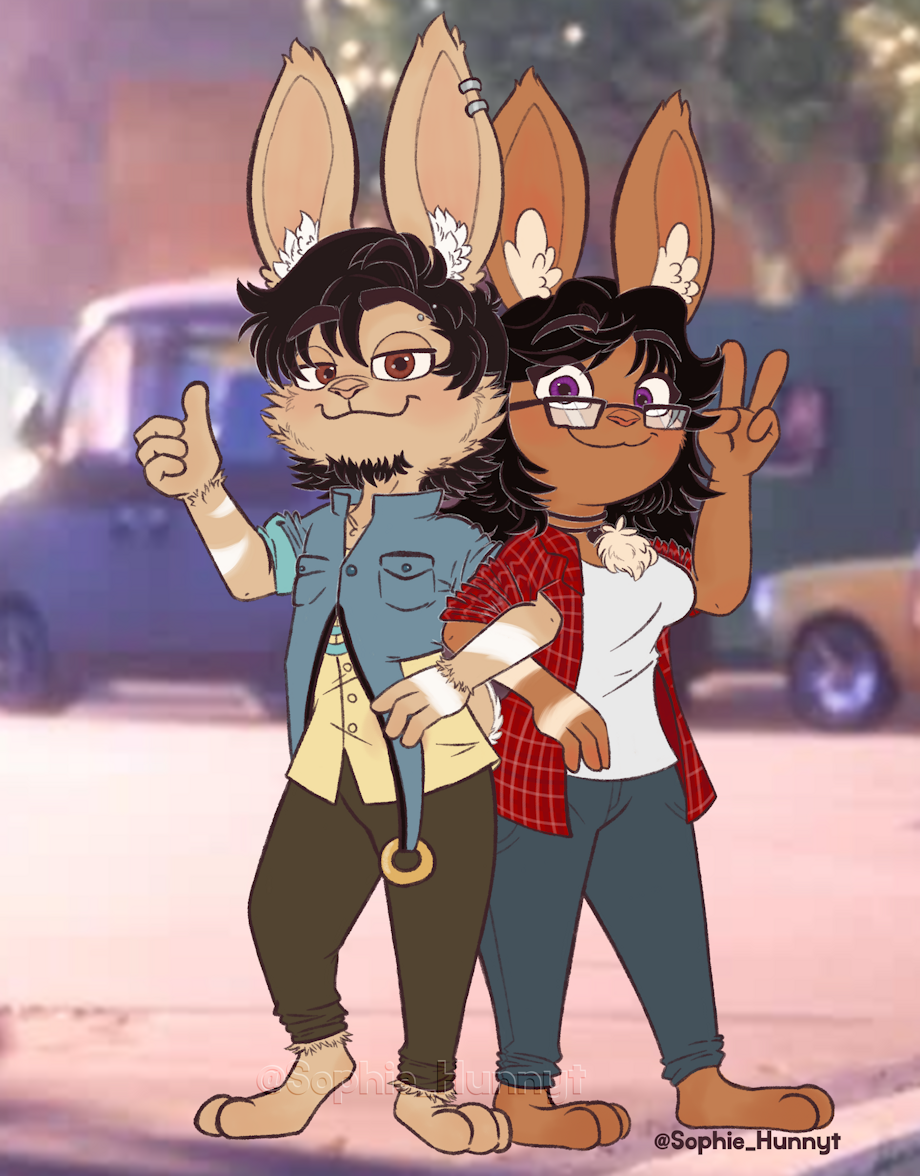 After the first movie came out almost 10 years ago, I finally have a decent drawing in that style, and I'm a huge fan of the movie (or rather, saga, since it's expanding). My two rabbit siblings were chosen as subjects, and the artist told me she'd try to replicate the style as an experiment. The result was amazing; honestly, for her first time, she did an excellent job, and I was very satisfied. And she took advantage of the fact that the second movie is all the trend right now. I can die happy now x3