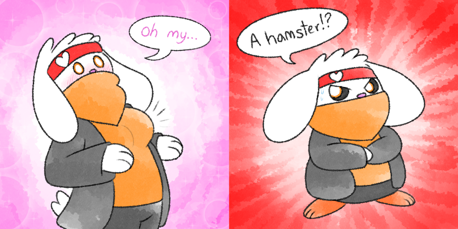 Some backup doodles! ArsonRaboot TFing into a gal, or into a hamster! Since he seems into transformation. :3