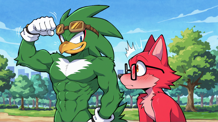 AI drawn pinup (and suggestive dialogue/action) Krystal.