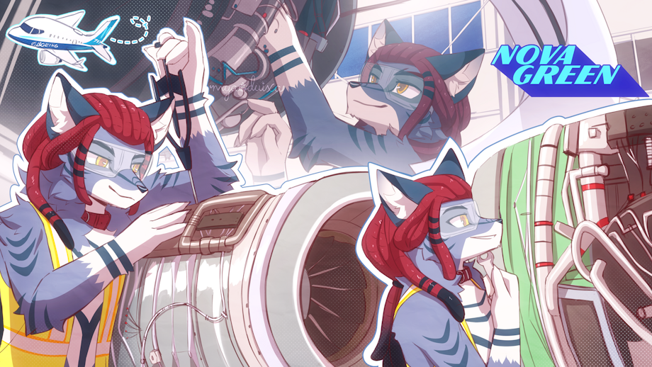 Commission for novagreen featuring his character's job as an aviation inspector. My last request from the Barkada Furfest 2025 queue after slight delay, huzzah!