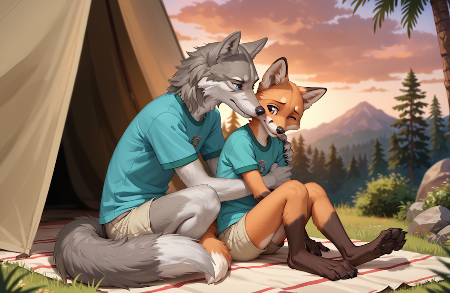 "Hey Tiki," the wolf cautiously greeted the fox, sitting next to him. "Hi Kody," Tiki responded. He didn't look up at the wolf. "Are you doing okay?" "Yeah..." Tiki obviously lied. He wasn't being nearly as open as he was, but he did scoot closer to Kody. "Can we go to our camp now?" "Yeah..." Kody agreed. He knew the scout master probably heavily disliked that Kody and Tiki have not been integrating with the rest of the group but Kody was too concerned about Tiki to deny him. Nearing their own camp, the wolf asked, "So what's wrong Tiki?" "Nothiiing," Tiki whined in a clear annoyed tone. Kody dropped it for now. A few minutes later they arrived at their own camp through the thickets. They sat near one another, and Kody put an arm around Tiki. The fox immediately leaned in and snuggled up to Kody. "You want to tell me what's bothering you now?" Kody gently pressed. Tiki remained quiet and shook his head. He pressed himself more against the wolf. Kody was still concerned, and he pet the fox between the ears and down his neck to his shoulder. The fox nuzzled against Kody. "Can I...." Tiki started but his voice caught in his throat and he stopped. He let out a heavy sigh. Kody gently licked the fox's ear. "It's okay, you can tell me." "I don't wanna go home tomorrow..." Tiki said quietly. "I wanna stay with you..." Kody let out a sigh. The fox was also being bothered by the camp trip coming to an end, and it was bothering Kody a lot as well. He pulled Tiki into his lap and hugged him tightly. "I know Tiki... I want to stay with you too." "Am I ever going to see you again?" Tiki asked with his voice quivering. "Yes!" Kody said definitively, squeezing the fox in his arms. His heart went out to the fox. "And I'm giving you my phone number and email so we can talk whenever you want!" Giving a ten year old my contact information should be harmless enough, right? Tiki squirmed a bit, but he seemed to calm down a bit. "I don't have a phone, but I can use the house phone, I guess. I haven't had an email before either..." "Does that make you feel better?" Kody asked. "A little... I guess." "Tiki, I love you," Kody said, putting his fears and hesitations to the back of his mind. "I'm going to miss you a lot. But let's do something fun tonight, and we can worry about it tomorrow." Tiki turned into the wolf, and put a paw under the wolf's shirt, while nuzzling up against his neck. Kody blushed, realizing that Tiki was getting an addiction to the naked activities they've been getting up to. |