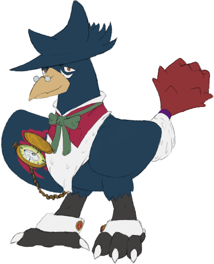 After completing a few years of labor as a guild's field agent, this birdie moved up to owning and operating his own banking service. How trustworthy is he with your money? You'd have to be rather competent and savvy with your deposits and loans to know for sure. Money is everything to a crow
