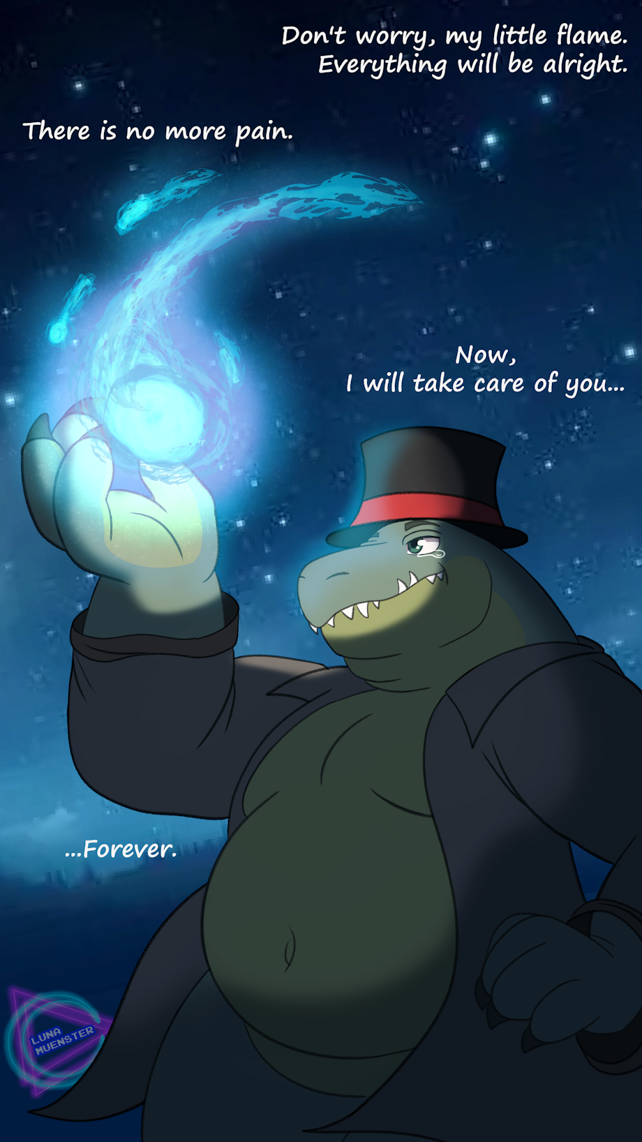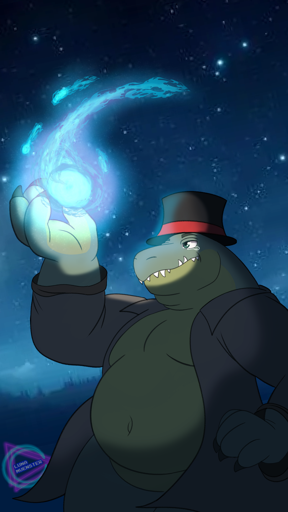 His OC is a Necromancer crocodile, with the ability to retrieve and protect the souls of fallen souls... like that of someone very close and dear to him who recently passed away.