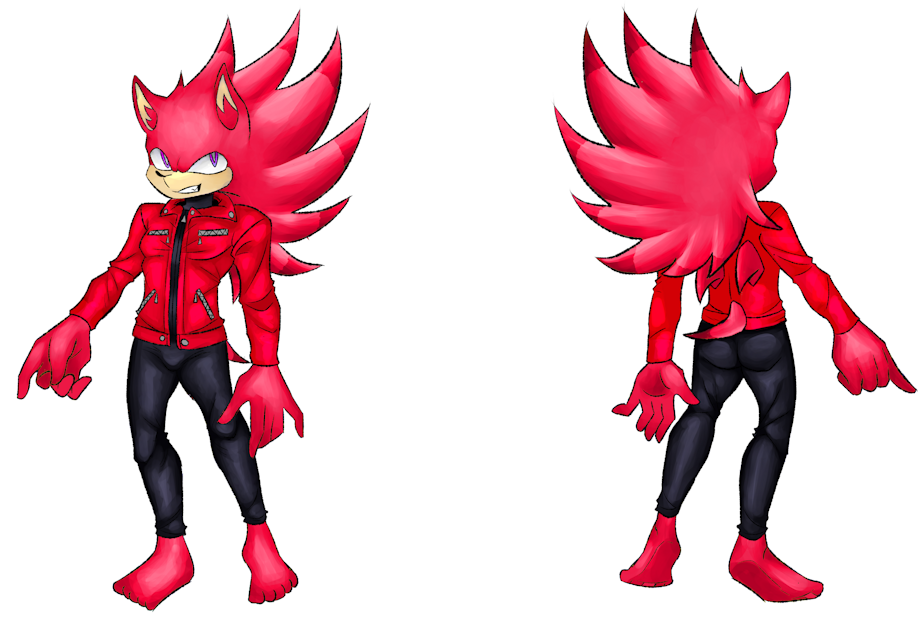 In the last image we see Sonic with all his clothes, the gloves and shoes are a reminder of his origins, the jacket and pants are my interpretation of what costume his personality would wear.