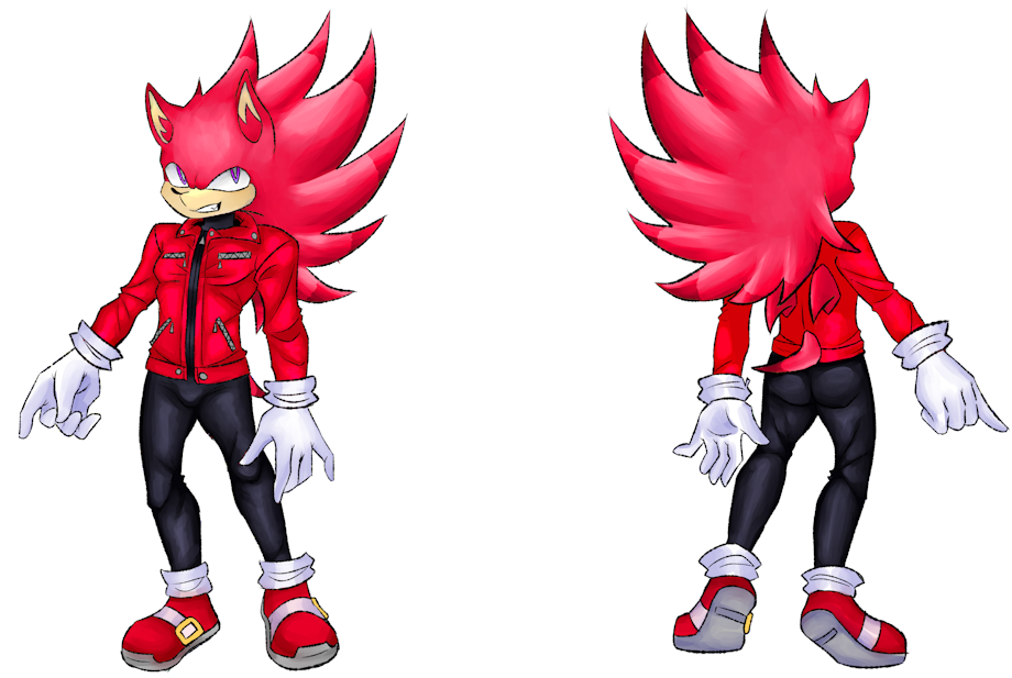 In the last image we see Sonic with all his clothes, the gloves and shoes are a reminder of his origins, the jacket and pants are my interpretation of what costume his personality would wear.