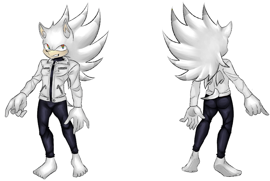 In the last image we see Sonic with all his clothes, the gloves and shoes are a reminder of his origins, the jacket and pants are my interpretation of what costume his personality would wear.