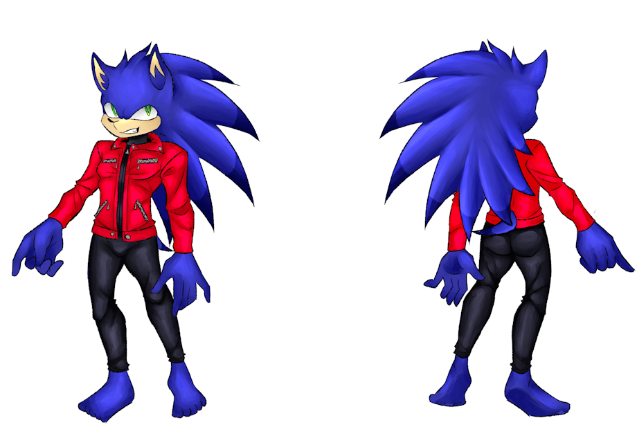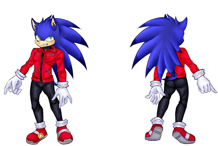 In the last image we see Sonic with all his clothes, the gloves and shoes are a reminder of his origins, the jacket and pants are my interpretation of what costume his personality would wear.