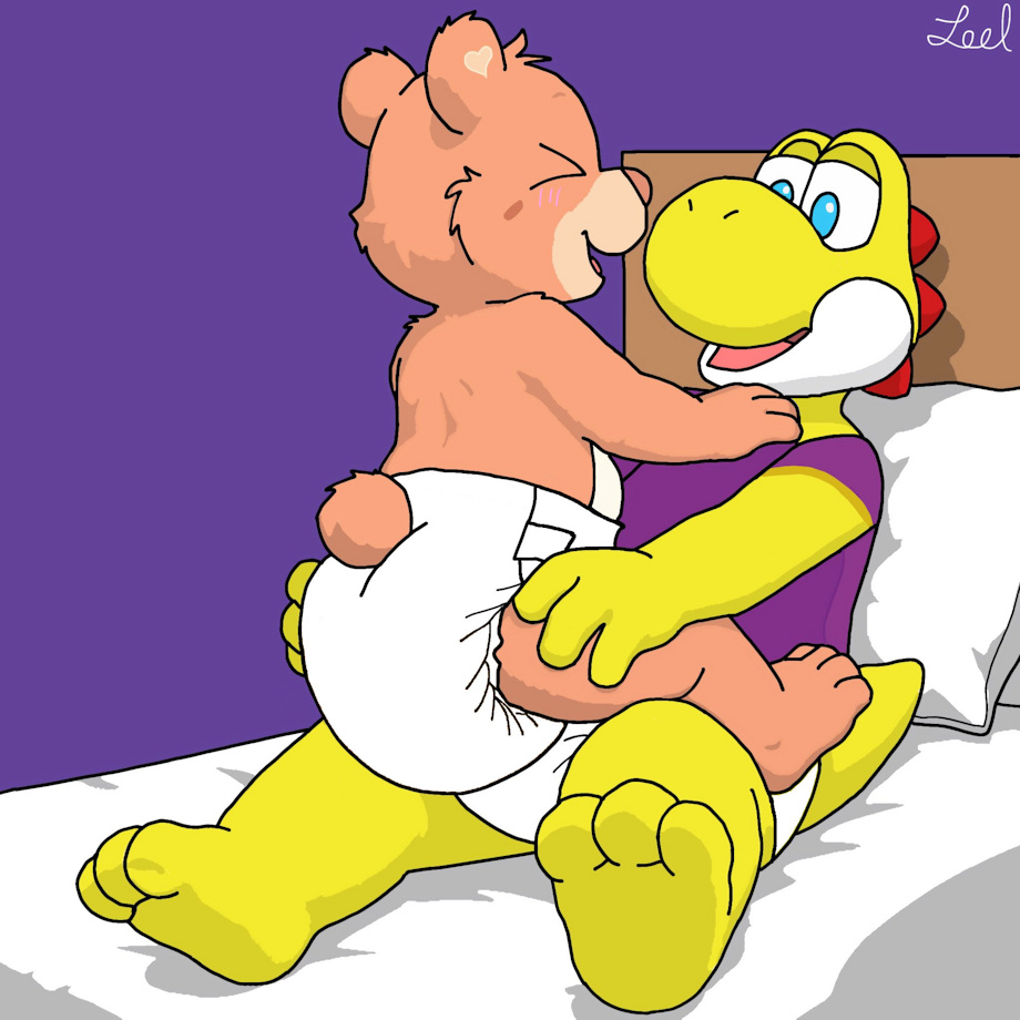 Showtime snuggling with his baby Cheer, when she suddenly fills her diaper, along with Show filling his right afterward.