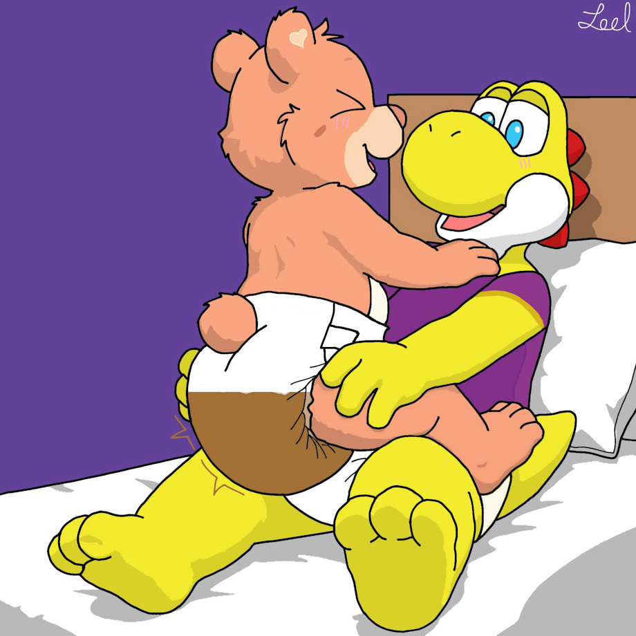 Showtime snuggling with his baby Cheer, when she suddenly fills her diaper, along with Show filling his right afterward.