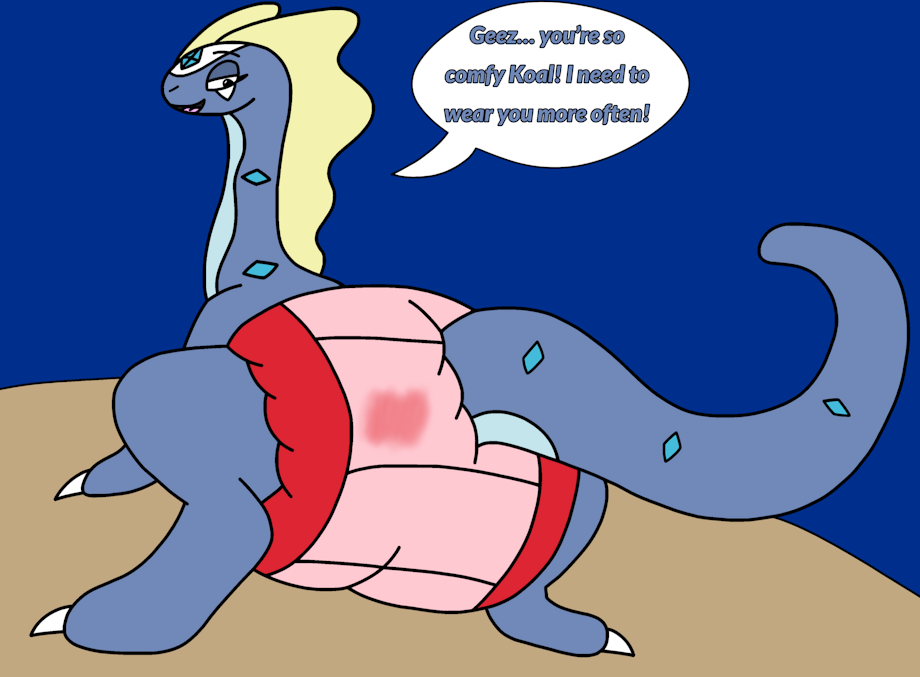 It looks like Glacier (Koal's girlfriend in her Aurorus form) is trying out her boyfriend's diaper form for the first time.