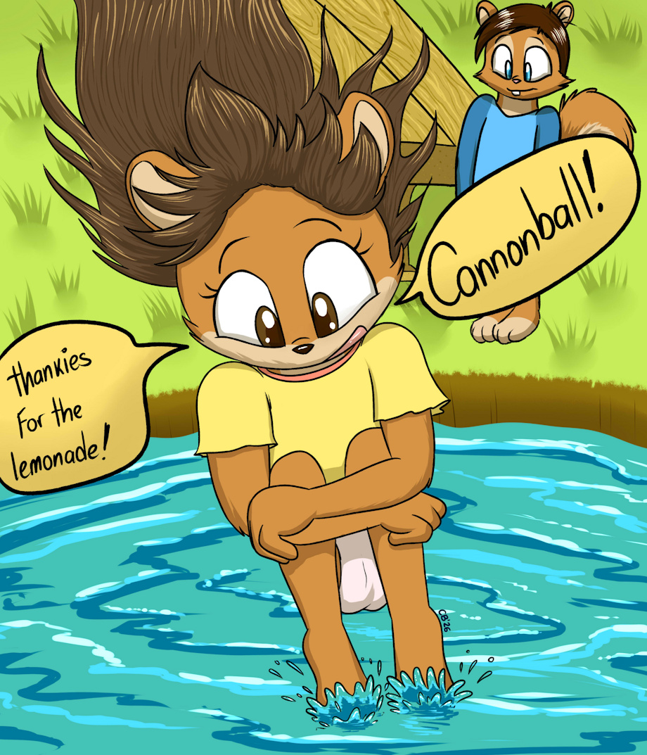 After drinking her lemonade with the cookie. she is now jumping to the pond to take a swim ;)