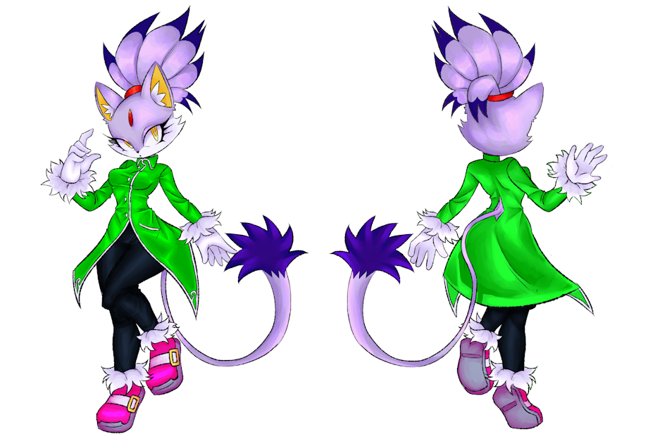 In the last image we see Blaze with all her clothes, the gloves and shoes are a reminder of her origins, the coat and pants are my interpretation of what costume her personality would wear.