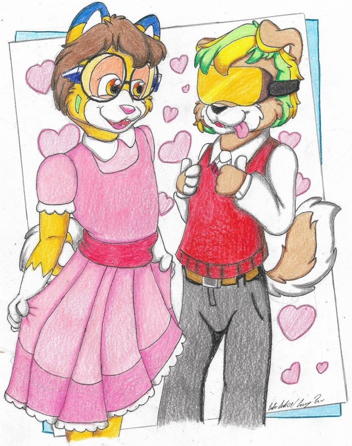Pup Snowy is showing off his princess dress to Radio, whom he approves of.