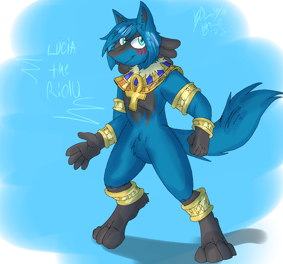 - Es una Request que le pedí a mi amigo BlackCatLightning "BCL" acerca de mi personaje Lucia The Riolu con accesorios al estilo egipcio [ya que Riolu y Lucario están basados en Chacales, la vestimenta egipcia les queda muy bien].