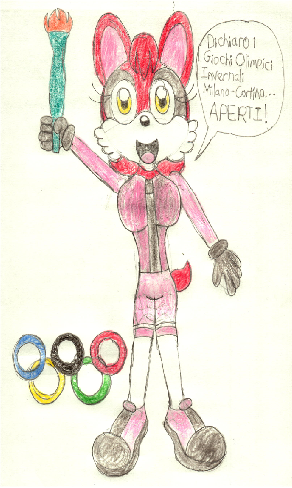 To celebrate the kickoff of the 2026 Olympic Winter Games in Milano and Cortina d'Ampezzo, Italy, I decided to draw my Mobian OC gal Claire the Rabbit holding the Milano-Cortina 2026 torch as she says "I declare these Milano-Cortina Olympic Winter Games...OPEN!" in Italian.