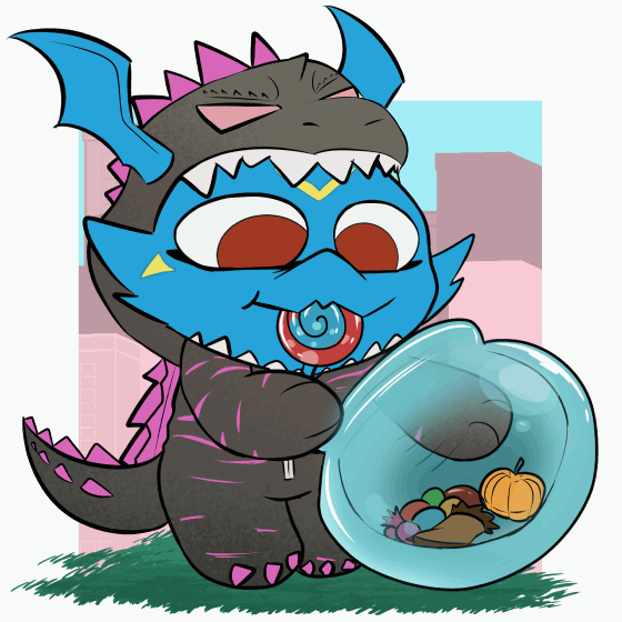 Late Halloween upload but last season, Sven decided to dress up as the King of the Monsters himself. I guess Sven is King of the candy here, huh? Hope he doesn't get a tummy ache.