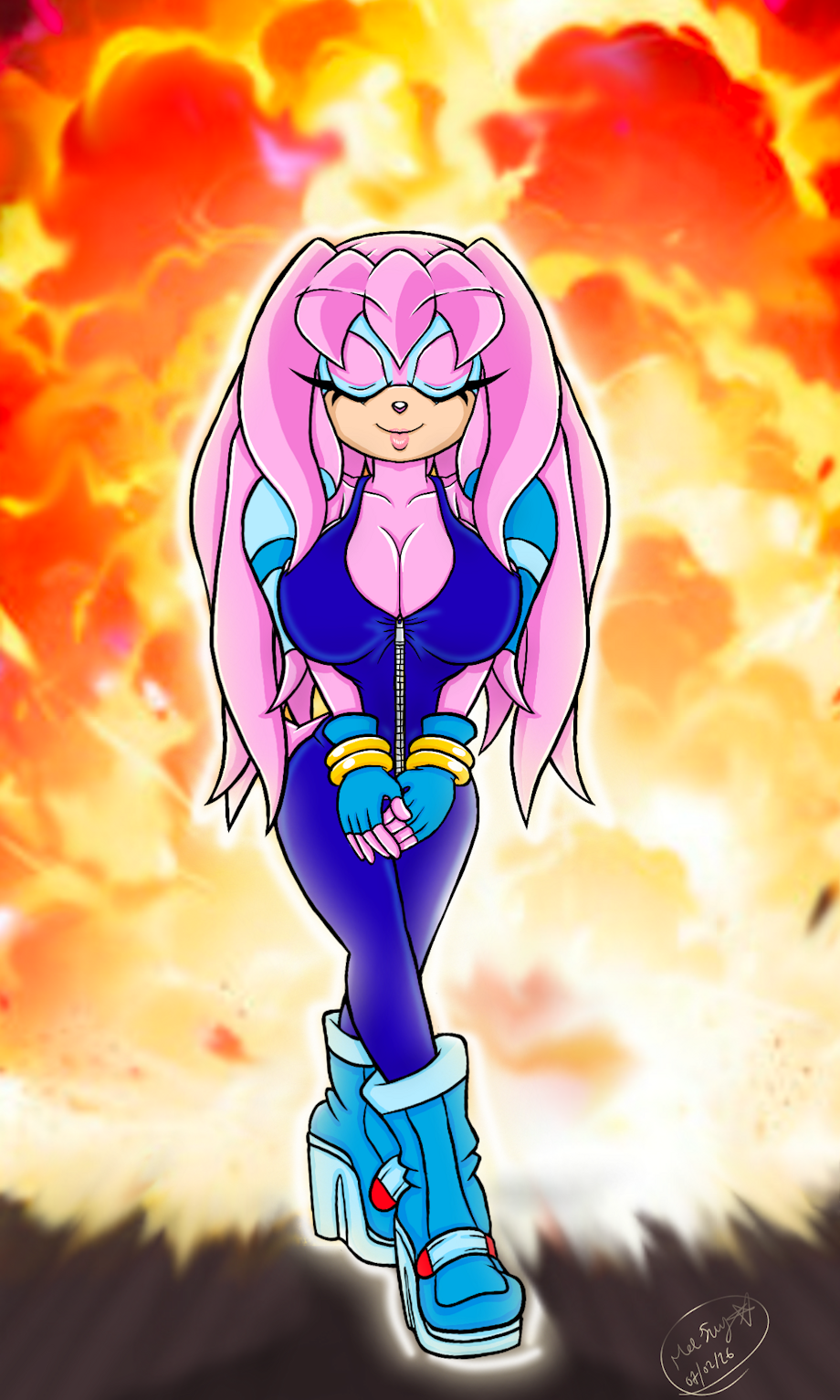 Referencing one of the Super Mario Galaxy movie trailers with Rosalina, Sky walks away after a fierce battle (probably with one of Eggman’s robots).
