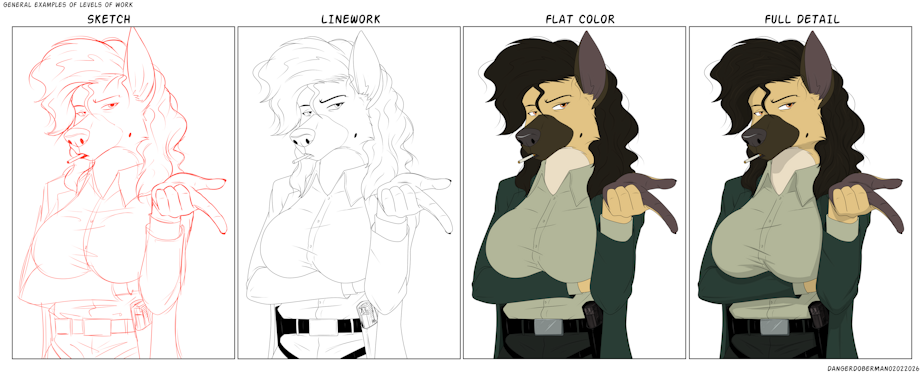 Styles shown are a general idea of the levels I offer. Styles may vary depending on character or characters involved.