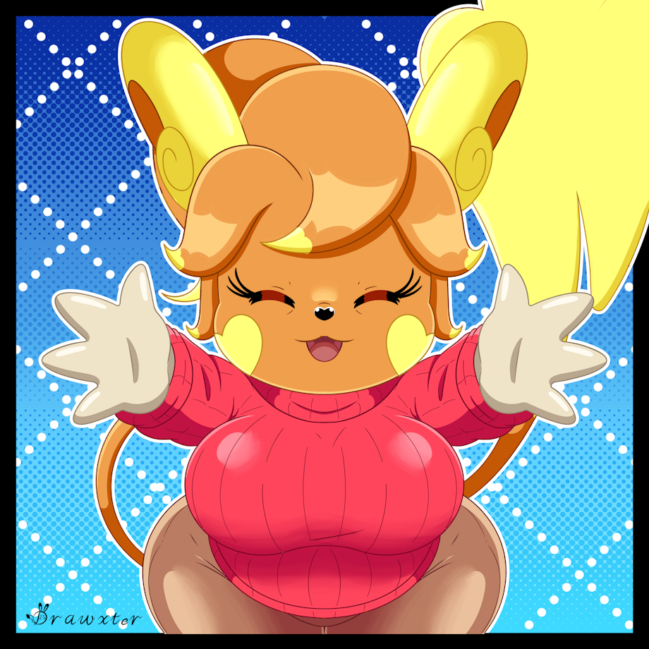 At least the original pic its a wholesome pic with my milf alolan raichu Aprhodite haha. She back and probably, its the first OC i show with her new design...Ops spoiler alert >w<